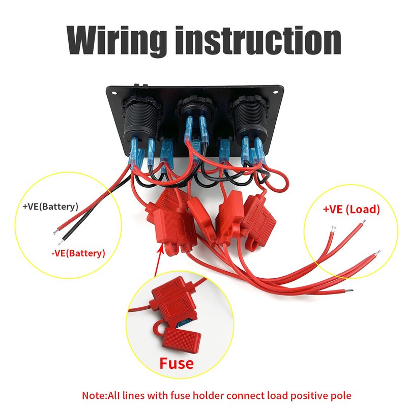 - 【Easy to Install with Safety Guarantee】- Pre-wire design with 5 pcs 15A fuse- Providing over-heated, output short circuit, over-charging protection for the toggle switch panel and function device.