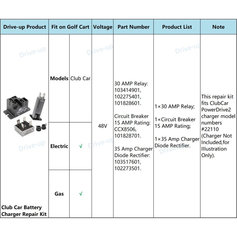 - This repair kit fits ClubCar PowerDrive2 charger model numbers #22110 (Charger Not Included,for IIIustration Only).