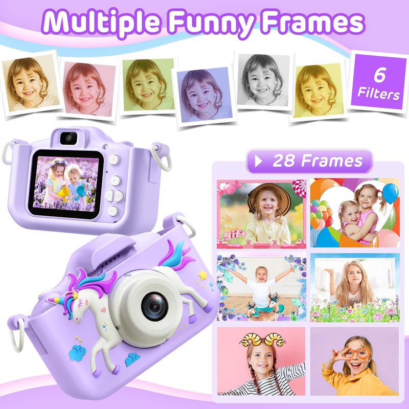 - 【Best Christmas Birthday Festival Gift for Kids】This cute Unicorn kids Camera Toy comes in a beautiful gift box, which is a great choose as a Christmas gift birthday gift holiday gift for your children during age from 3-8 years; Environment-friendly materials, non-toxic,It supports selfie, video mode and 3 puzzle games, perfect mini video camera for kids.