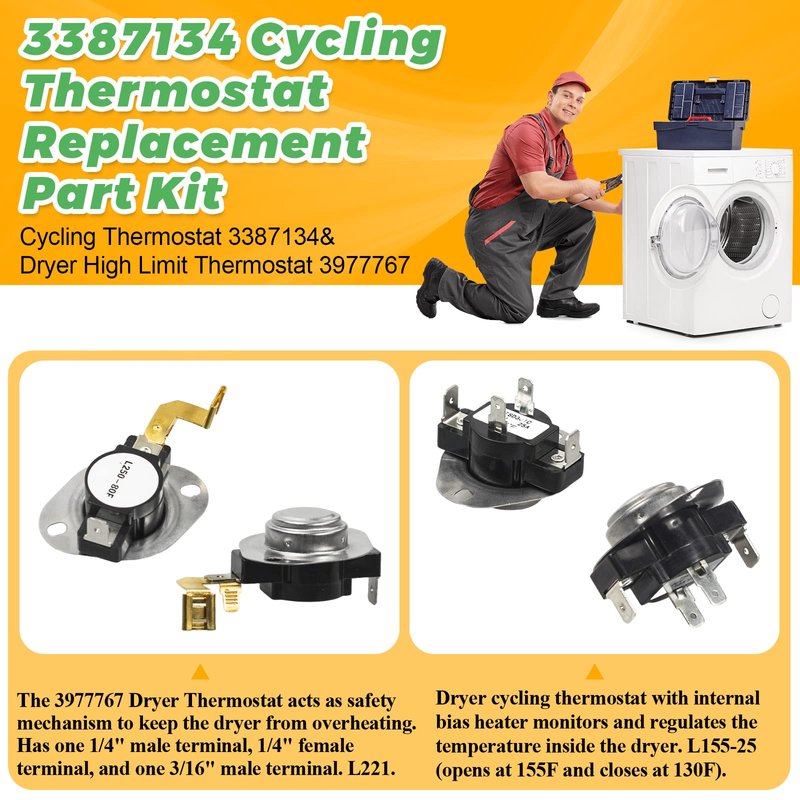 ✔ PACKAGE INCLUDES : 1 x 3387134 Cycling Thermostat, 1 x 3392519 Dryer Thermal Fuse, 1 x 3977393 Thermal Fuse, 1 x 3977767 Dryer High-Limit Thermostat