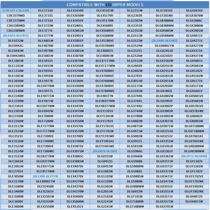 - 【Compatible machine models】 This dryer roller Kit for LG and Kenmore can be fit for most lg dryers and Kenmore dryer models. Suitable for DLE2516W, DLE5977W, DLE7177WM, etc., more compatible machine models, please check picture 6 and picture 7. If you can't confirm, please feel free to contact me, I will help you confirm it
