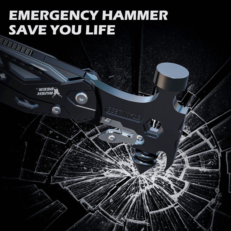- 【Upgraded Portable Emergency Survival Tools】The multitool hammer survival gear tool kit with 2 rope cutters and 2 hammers, is a utility tool for keeping in the car to deal with any emergencies, and provides double protection to you and your family. Strong enough to shatter the glass curtain wall, cut the rope curtain in a dangerous escape. Can cut, pry, hammer a nail,twist the screw, open fire hydrant, saw wood, etc. A necessity for every family