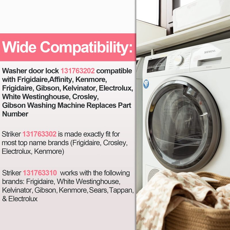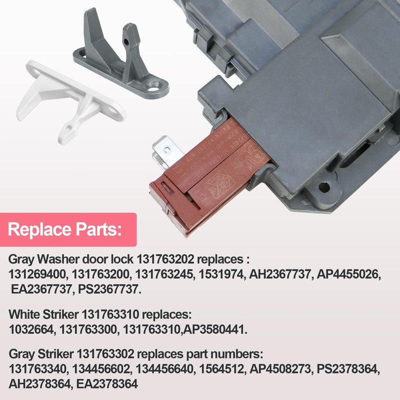 - 【What you get】1Pack 131763202 Washer Door Lock Switch Assembly & 2Pack 131763302 Washer Door Striker & 2Pack 131763310 Washer Door Strike. We provide 18-Month Warranty and guarantee you the best service.
