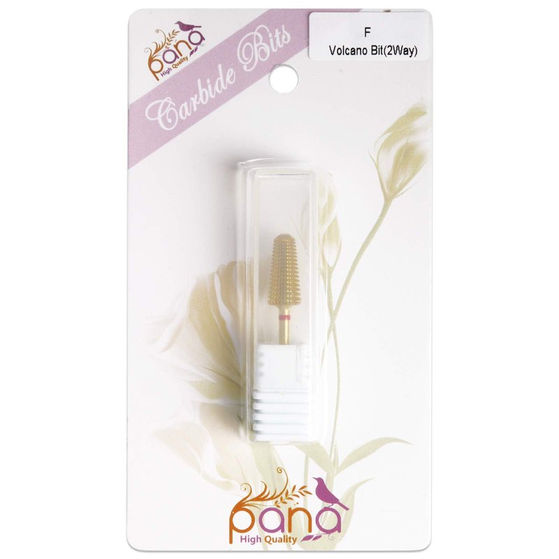 Upgraded PANA Volcano Nail Carbide Bit - Two Way Rotate use for Both Left and Right Handed use - Fastest remove Acrylic or Gel – For Manicure Drill Machine - 3/32" (Fine - F, GOLD)