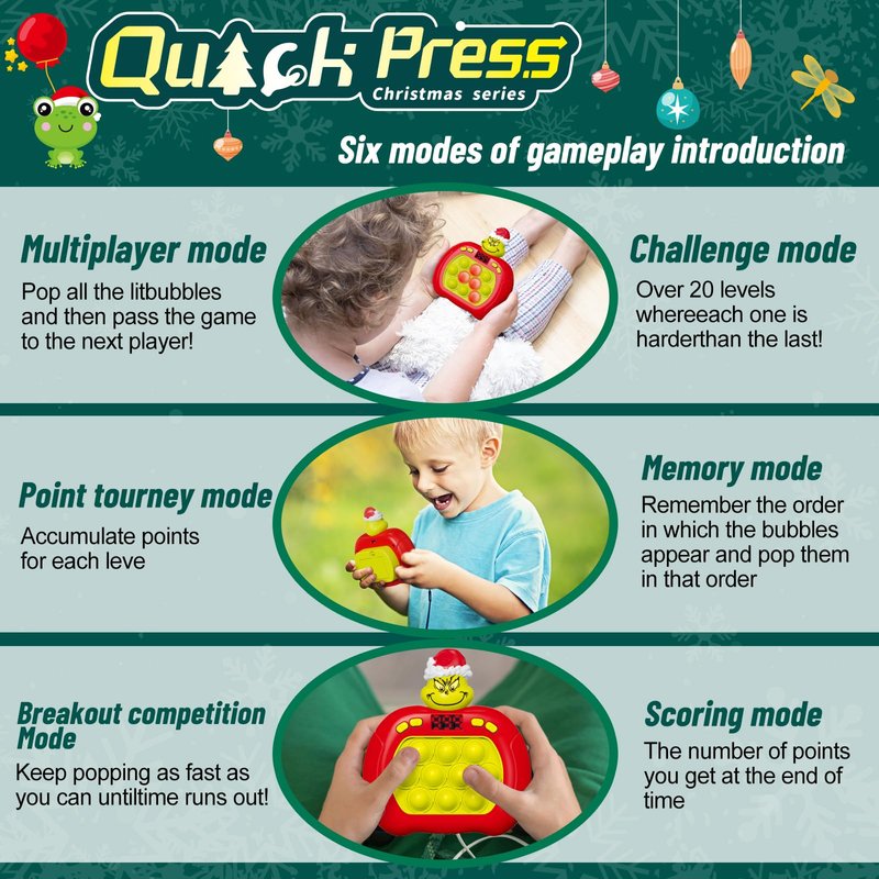- 2024 Upgraded Christmas Gifts for Kids: Looking for a captivating toy gift for kids? Get ready for endless hours of fun with this pop fidget toy ! With multi modes, this handheld fidget toy is perfect for all ages.Simply install then lights up dancing bubble at now!Addictive classic press bubble game meets fast electronic game!