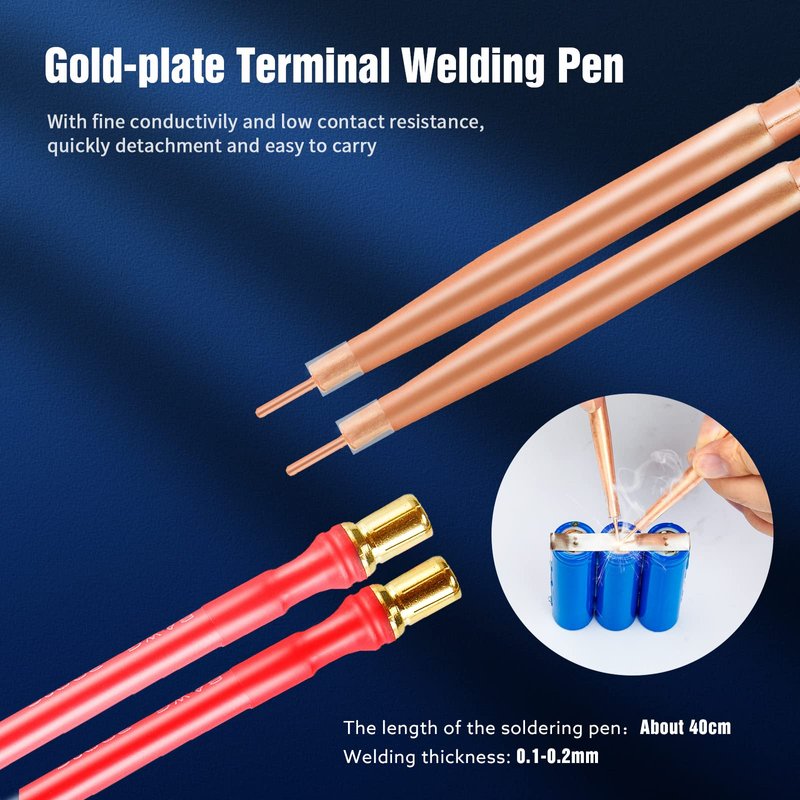 - ★【With 40cm Welding Pen & Portable Design】:The gold-plate spot-welding pen consists of multiple strands of high temperature wire,with fine conductivity,torsional resistance ability and low contact resistance,using safely.The compact and portable size design is also very easy to carry.It is a very ideal spot welding tool for you.