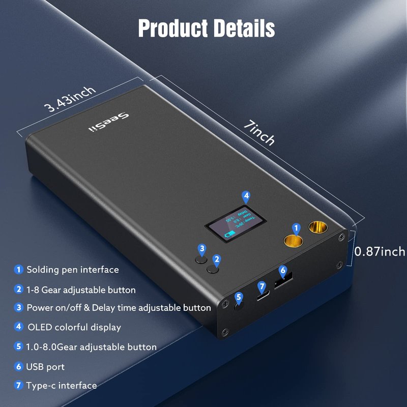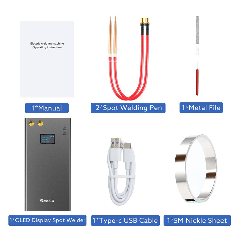 - ★【Built-in 7500Mah Rechargeable Battery】:Seesii portable spot welder built in 7500mAh high-rate rechargeble polymer lithium battery,with type-C charging cable,can be fully charged within 3 hours, and it can continuously weld thousands of points after being fully charged.What's more, if you need to it charge to your phone,the mini welder tool can be used as a power bank.