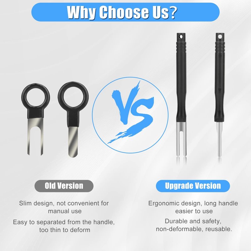 - 2023 UPGRADE DEPINNING TOOL: Unlike ordinary terminal extractor tools are only 0.6mm thick, our upgraded thickness reaches 0.8mm, thicker and harder, less likely to bend or break, and more durable. Moreover, to make your maintenance work more comfortable and easy, we have improved the traditional O-ring handle to a long handle, which is more ergonomic.