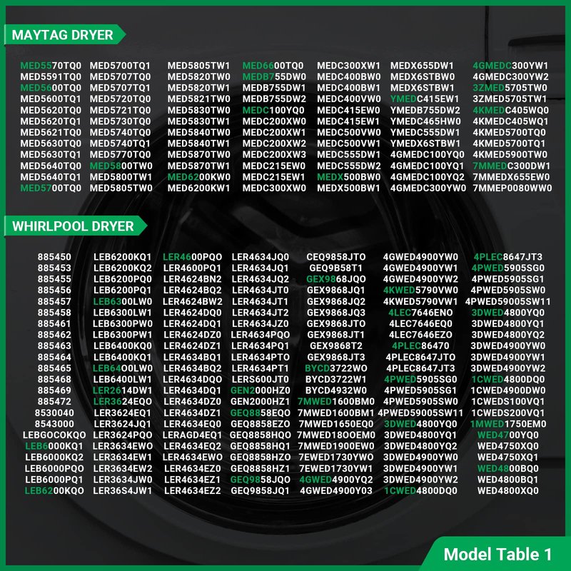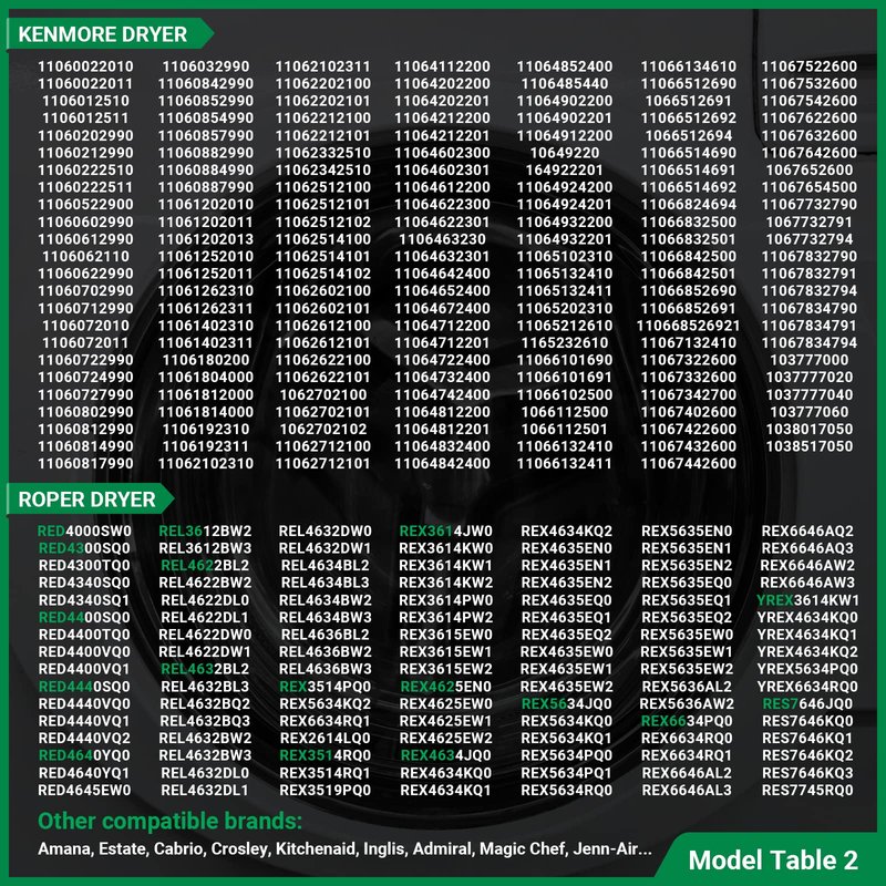 whirlpool, kenmore, maytag, kitchenaid, roper Dryer, crosley, estate, amana, inglis, admiral, magic chef, jenn-air.