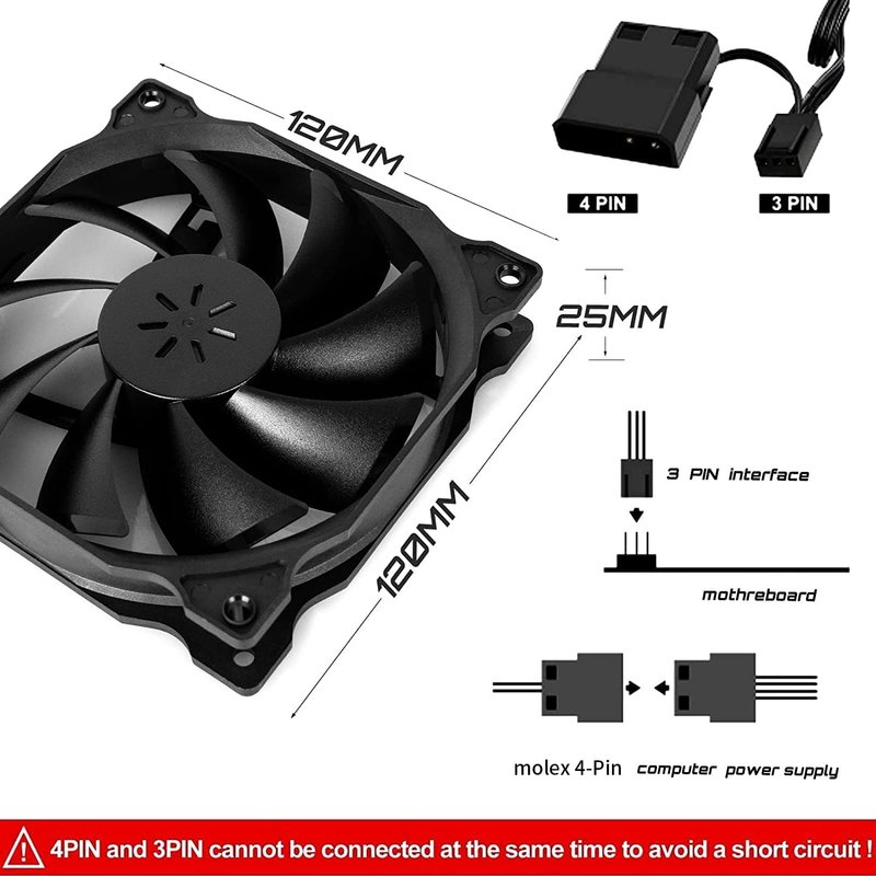 uphere 3-Pack Long Life Computer Case Fan 120mm Cooling Case Fan for Computer Cases Cooling,12BK3-3