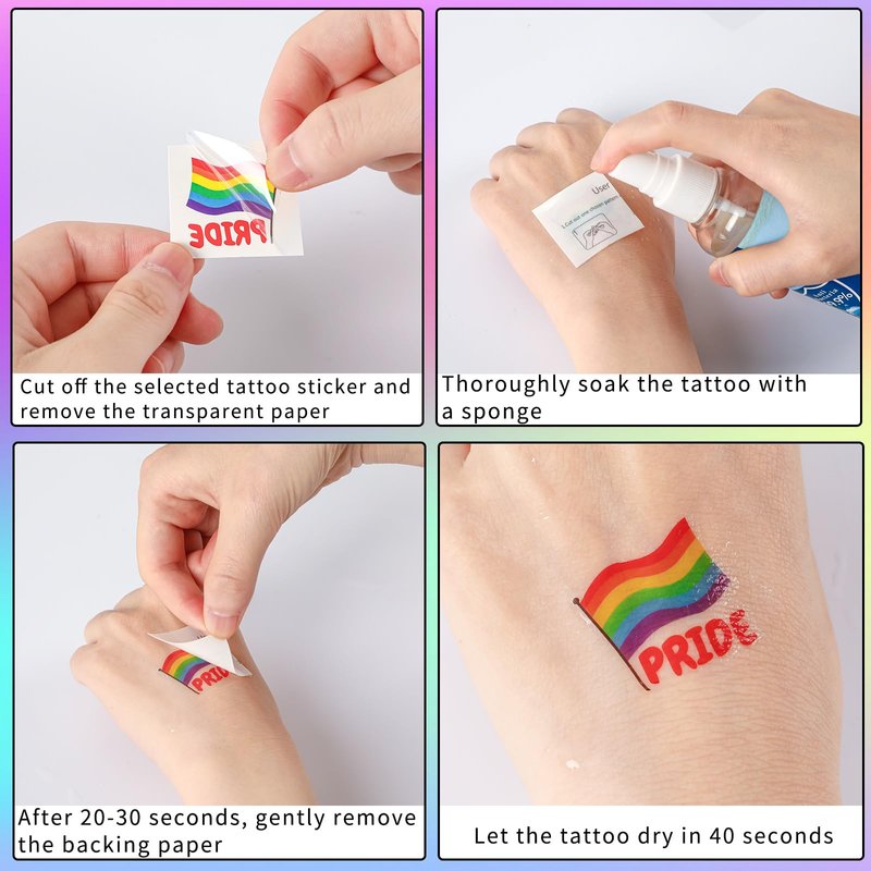 - Good-Quality Materials: Each pride temporary tattoos is made of good-quality materials, with vivid and lasting colors, easy to paste, no need to worry about fading or falling, so that you can show yourself to your heart's content. Unlike traditional tattoos, the rainbow temporary tattoos are easy to remove, allowing you to change different patterns and styles at any time