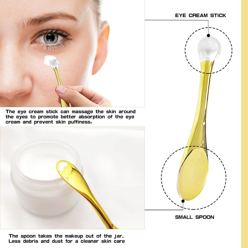 - Unique design:The eye cream applicator is designed with double ends.The end is a scoop for digging eye cream, more hygienic. The other end is a ball-shaped massage stick for applying eye cream, helping to promote eye cream absorption.