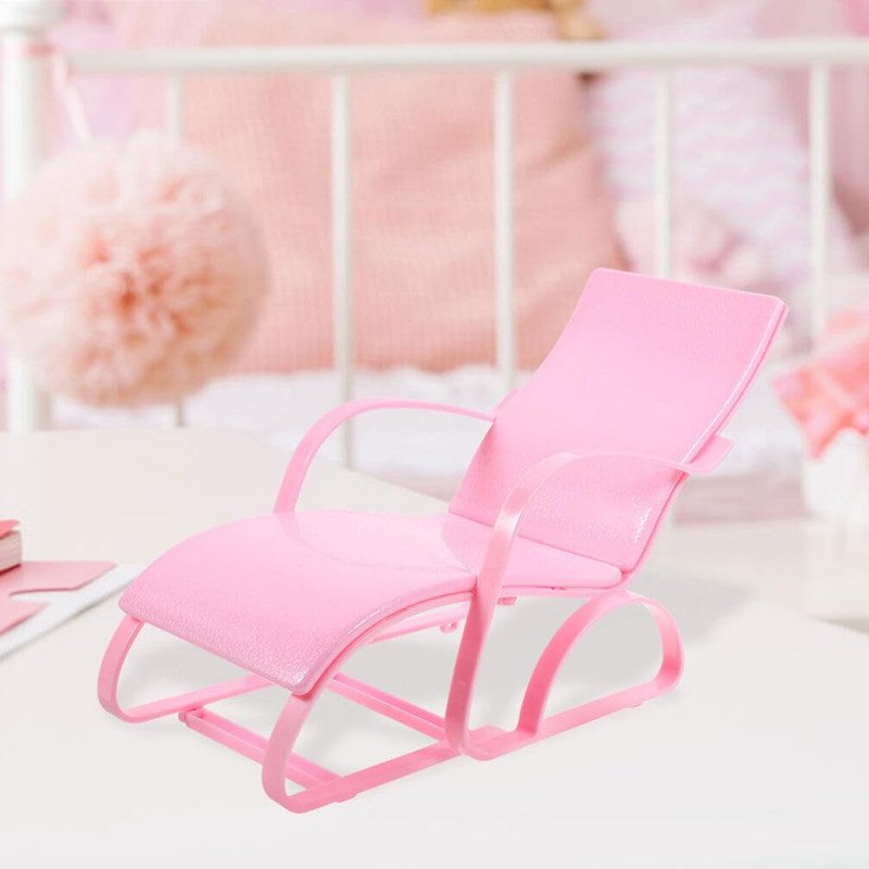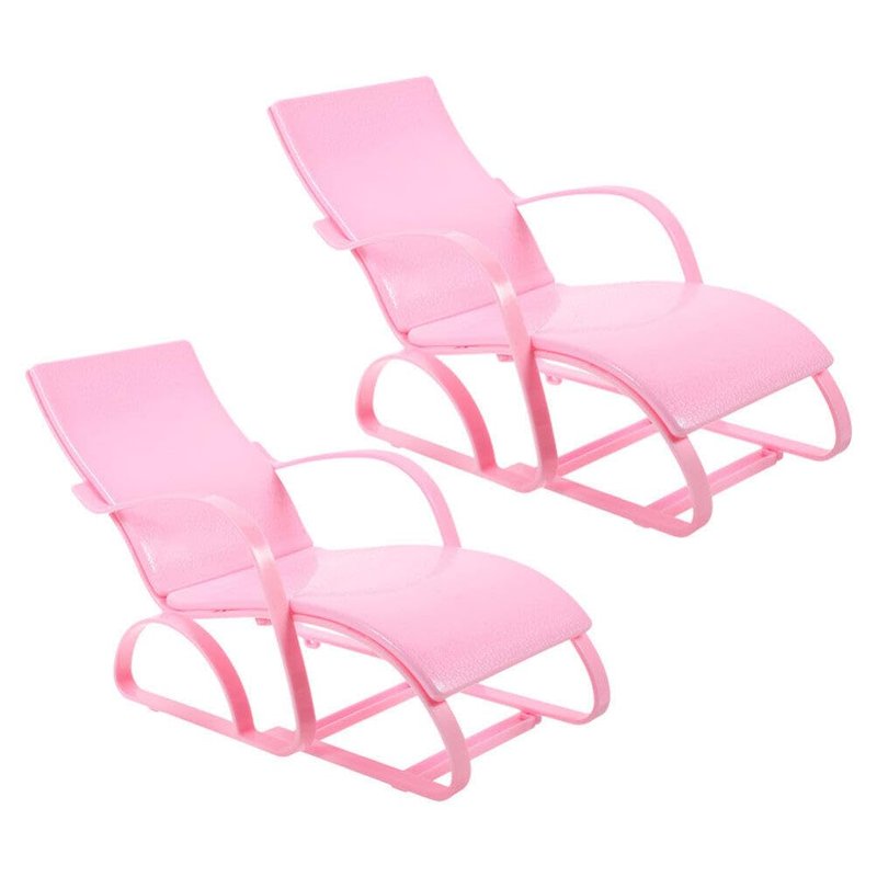 UPKOCH 2 Pcs Mini Dolls House Beach Chairs, 6.68 Inch Plastic Doll House Lounge Chairs, Miniature Beach Accessories for Crafts, Dollhouse Furniture for 11.5 Inch Dolls, Pink
