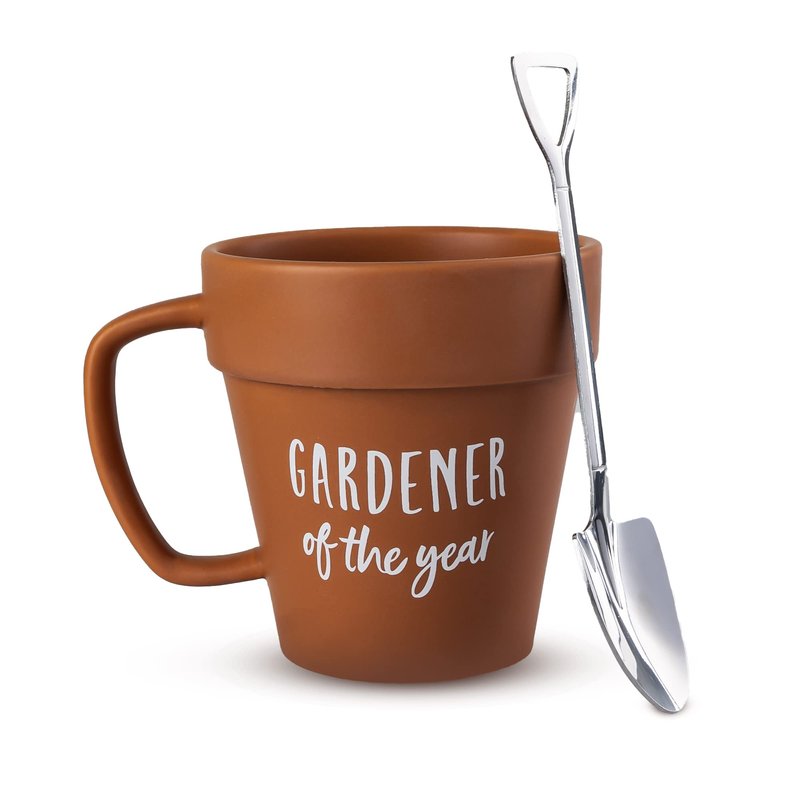 Our Gardening mug features a unique designed coffee mug with a "Gardener of the Year" quote, with shovel shaped spoon to go along with it, surely any nature lover will truly appreciate!