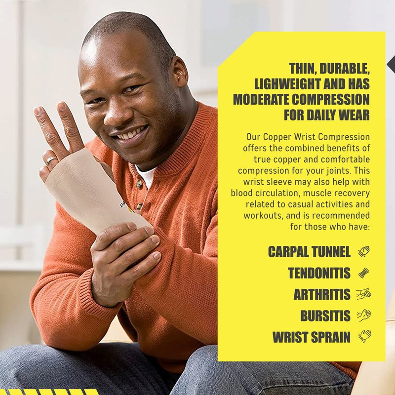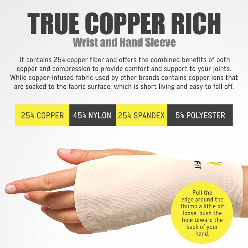 UptoFit - Copper Wrist Compression Sleeve, Hand Brace Wrist Support for Carpal Tunnel, Wrist Brace for Tendonitis, Breathable Copper Compression Sleeve, White/Skin in Medium, Pack of 1
