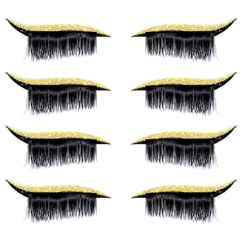 Uranian Eyeliner Stickers with Eyelashes Reusable Eyeliner and Eyelash Stickers Glitter Instant Eye Line Strip Eyeshadow Stickers Colorful Eyelid Tape for Party Eye Makeup Tool for Women (Yellow)