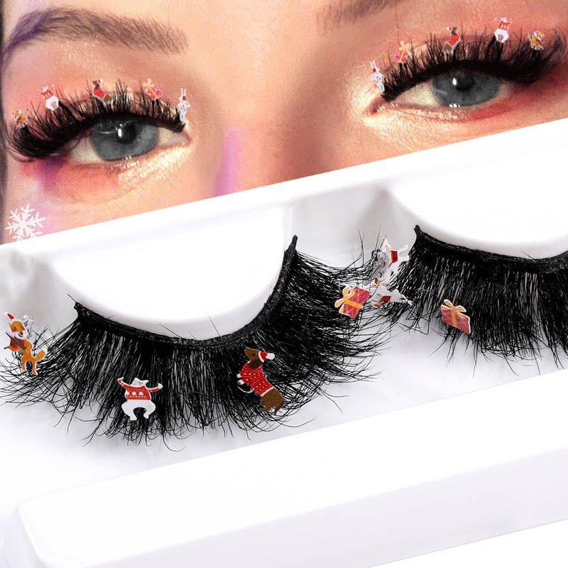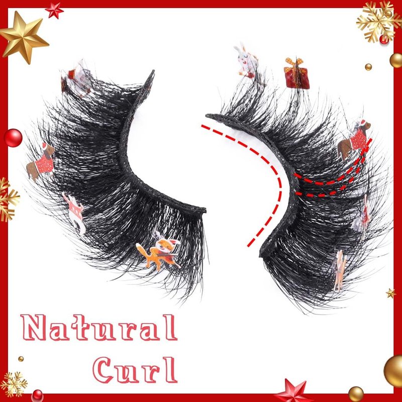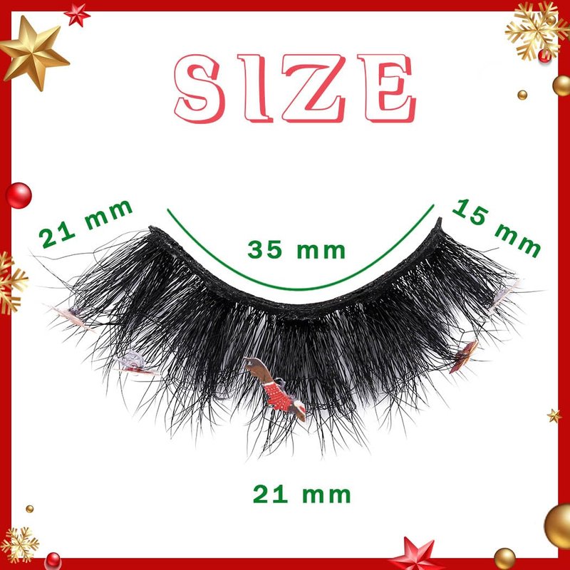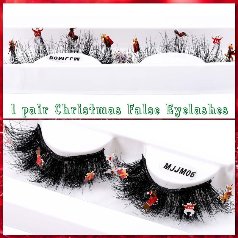 Uranian Mink Lashes D Curl Strip False Eyelashes for Christmas About us Uranian focus on beauty supplies and daily accessories. Committed to bring high-quality products and good services to customers. Hope to bring you a good shopping experience. Features 1. 1 pair, stick with cute decorations, such as snowman, candy cane, Xmas tree, Christmas hat. 2. 10/10 handmade, vegan and cruelty free. 3. Soft and skin-friendly, durable and reusable. 4. Natural look and light weight, Easy to wear. How to use 1. Remove the eyelashes from the box, trim the eyelashes to fit your eyes. 2. Adjust the false eyelashes to fit your eye curve. 3. Apply eyelashes glue to the root of the false eyelashes. 4. When the glue dries slightly, press the fake eyelashes firmly against the roots of the natural lashes.