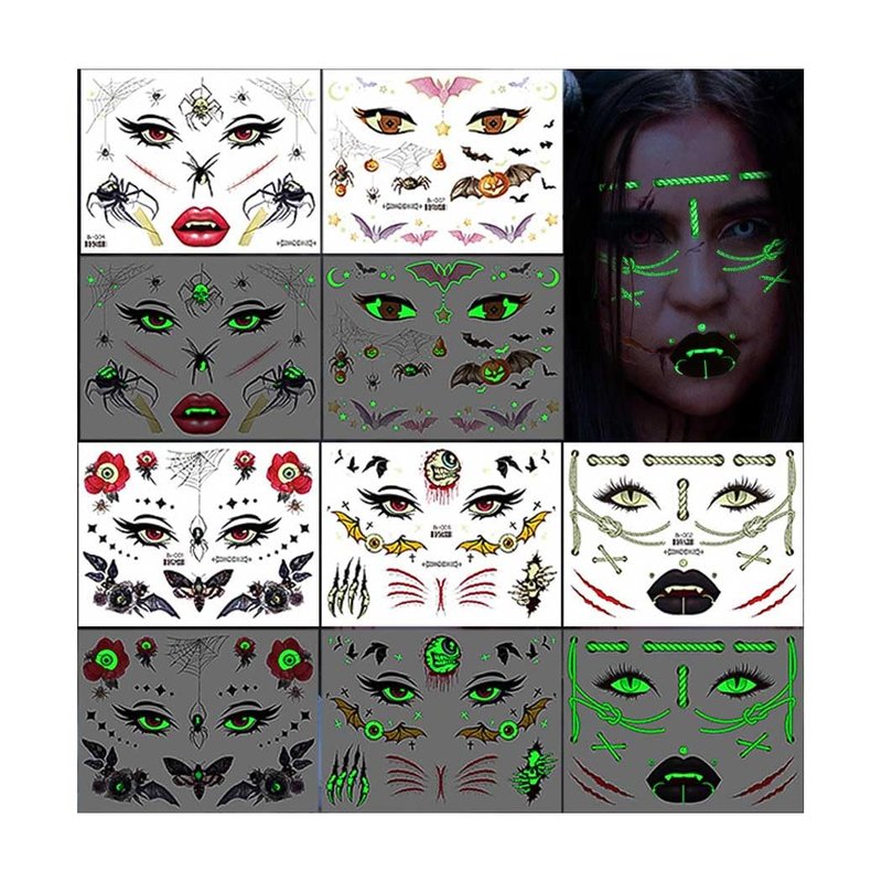 Uranian Halloween Temporary Tattoos Luminous Face Tattoo Stickers Glow in the Dark Tattoos Halloween Party Supplies for Women