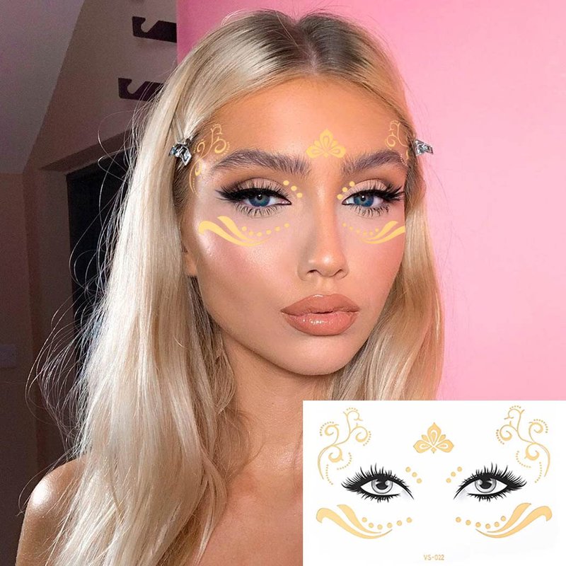- Face makeup tattoo stickers: Different pattern can be combined freely to show different charm. You can apply those fake tattoos to the face, neck, chest, arms, hands or any other part of body, adding a personal touch