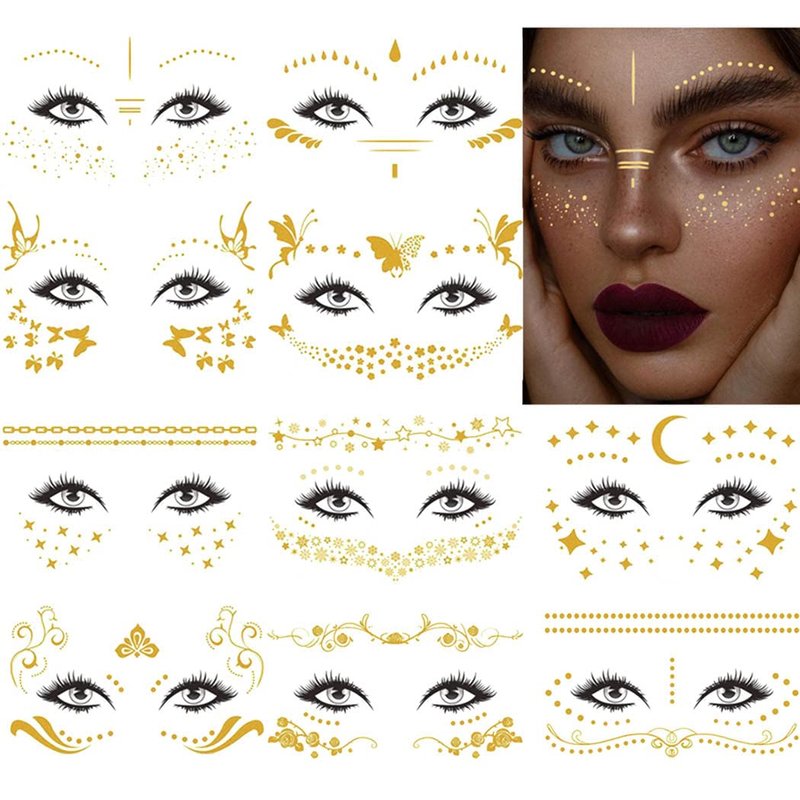 Uranian Temporary Face Tattoo Stickers Gold Freckles Stickers for Women Butterfly Transfer Metallic Tattoos Mixed Styles Waterproof Fake Tattoos for Face Makeup Carnival Festival Halloween (Set 1)