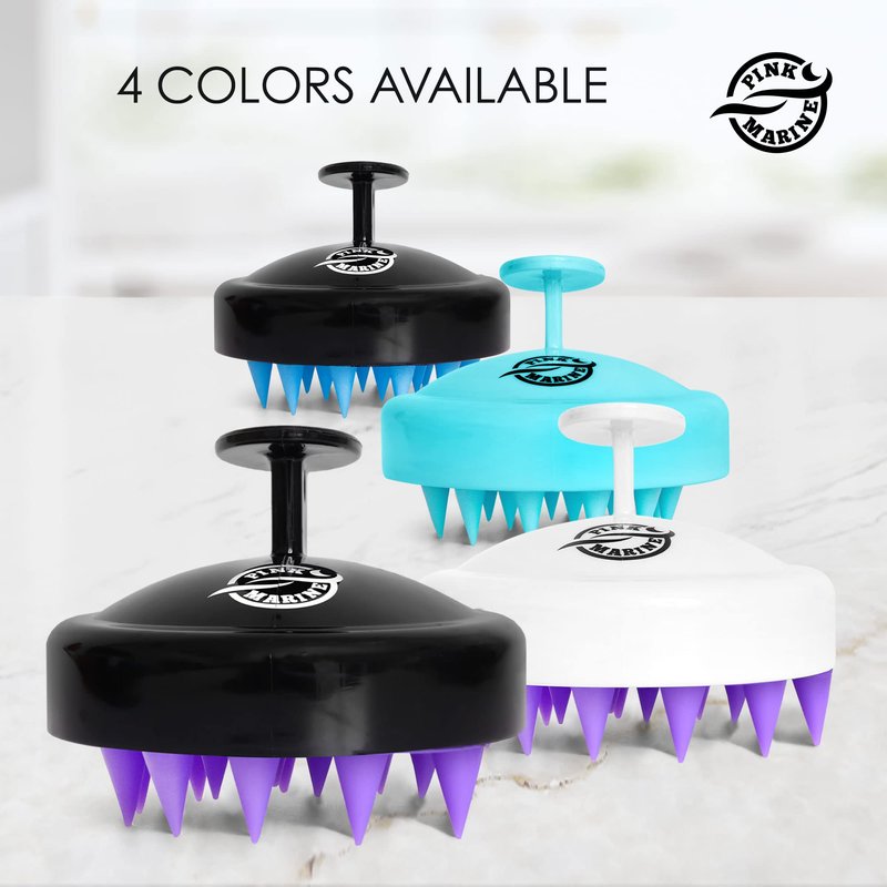 The Pink Marine scalp massager is ergonomically designed to allow you to comfortably and safely promote hair growth. This device can also double as a tangle teaser to loosen tangled hair before brushing or combing. What is this device? Many use it as a scalp exfoliator or a soft shampoo brush and scalp massager. Still, your imagination is the only limit regarding how many ways you can use this. High-quality soft silicone shampoo brush with just enough hardness to remove external pollutants that build up in your hair and on your scalp. Suitable for all hair types: thick and thin hair, long or short hair, straight or naturally curly hair, dry or wet hair.