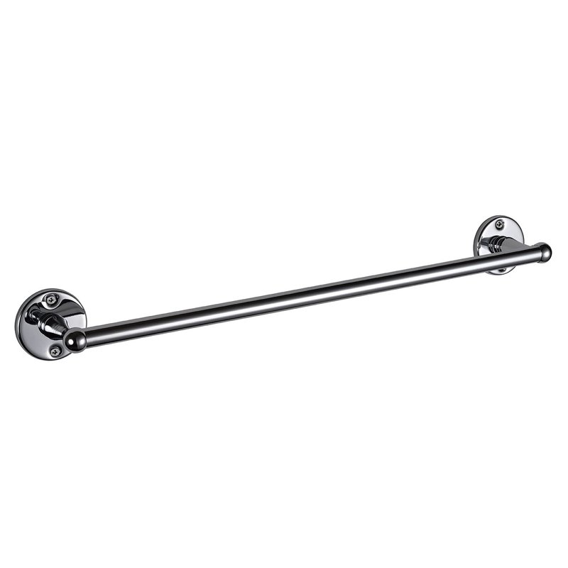 - Mounting brackets each measure 2 1/4" in diameter; projection from the wall measures 3"; towel bar measures 18" across; installed length (including brackets) of towel bar is 20".