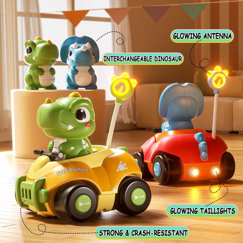 - 【The First RC Car for Your Child】This is a great remote control car for toddlers. The toy car features a cute dinosaur design to awaken children's curiosity and grab their attention,and help develop their motor skills and hand-eye coordination.