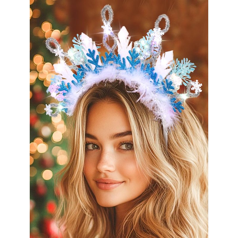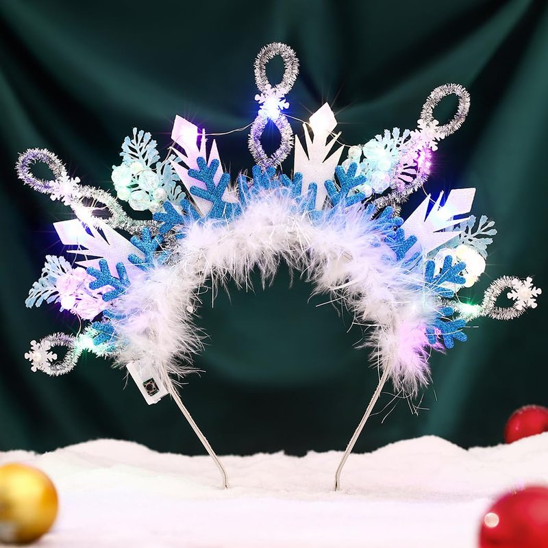Urieo Christmas Snowflake Light up Headbands for Women and Girls