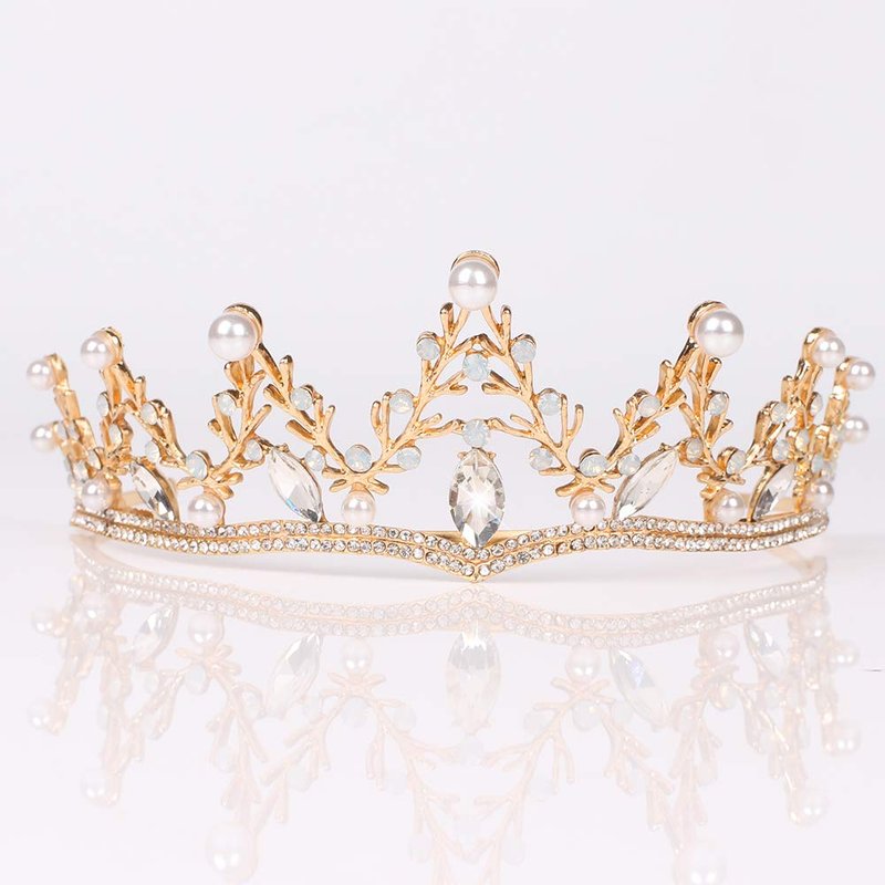 - Luxury Gold crown with crystal rhinestone and pearl