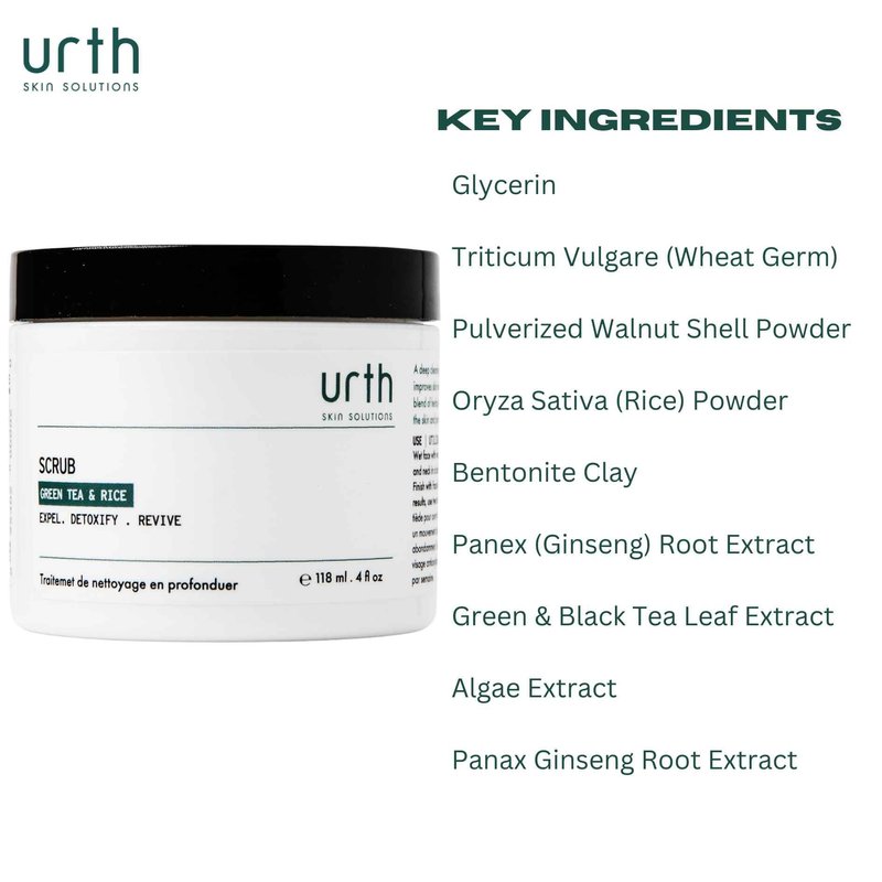 - NATURAL GREEN TEA FACE SCRUB FOR BLACKHEADS: Harness the power of plant based ingredients including Kaolin Clay, Green Tea and Vitamin C with Urth's face exfoliator scrub. Plant powered ingredients and essential oils work together to exfoliate, minimize pores and deliver a refreshing deep cleanse.