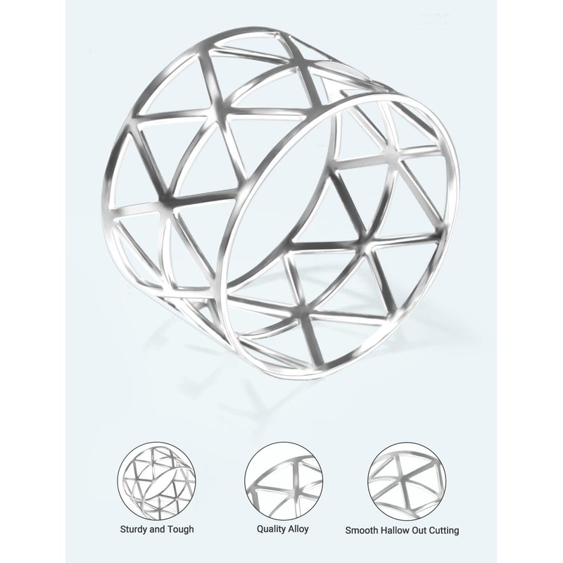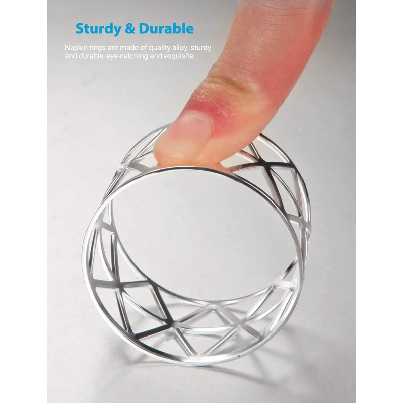 - -Dress up your cloth napkins and your table with napkin rings. Tastefully traditional napkin ring crafted in alloy with silver finishing and hollow design brings elegant shine to table settings.