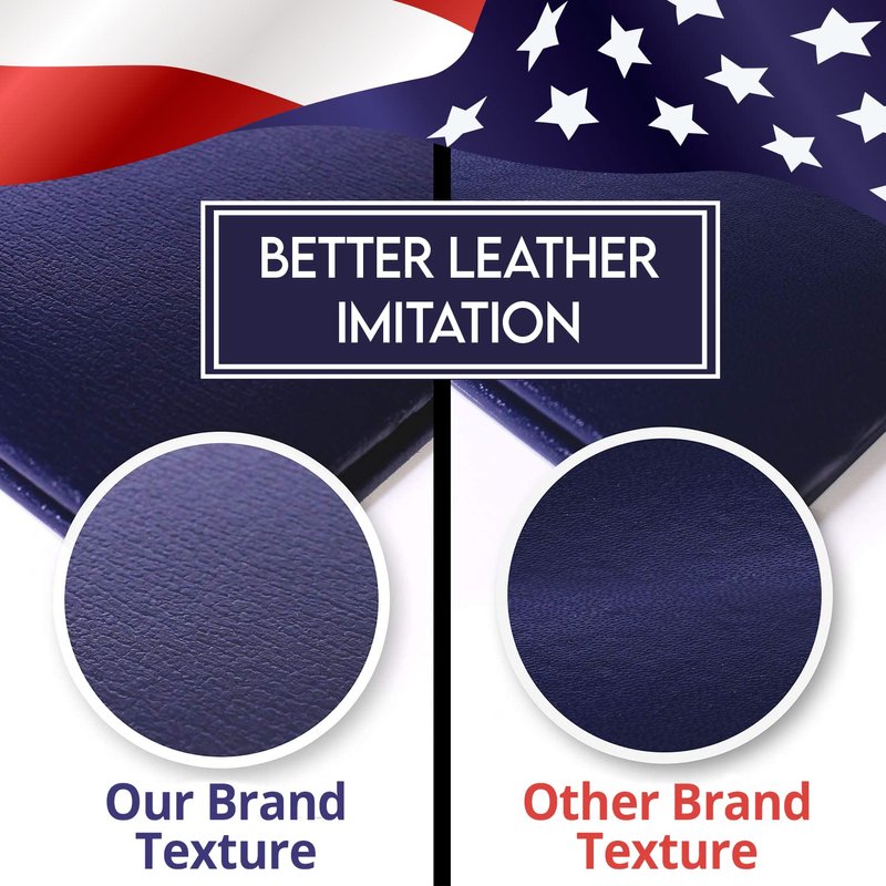 - 🇺🇸 Textured Faux Leather in Elegant Navy Blue. Our product didn’t use animal leather to manufacture it.