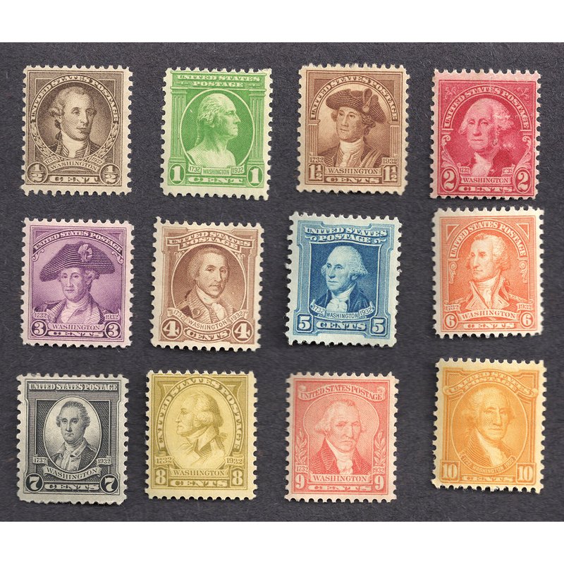 U.S. Postage Stamps Scott# 704-715 Washington Bicentennial Issue 1932 Complete Set of 12
