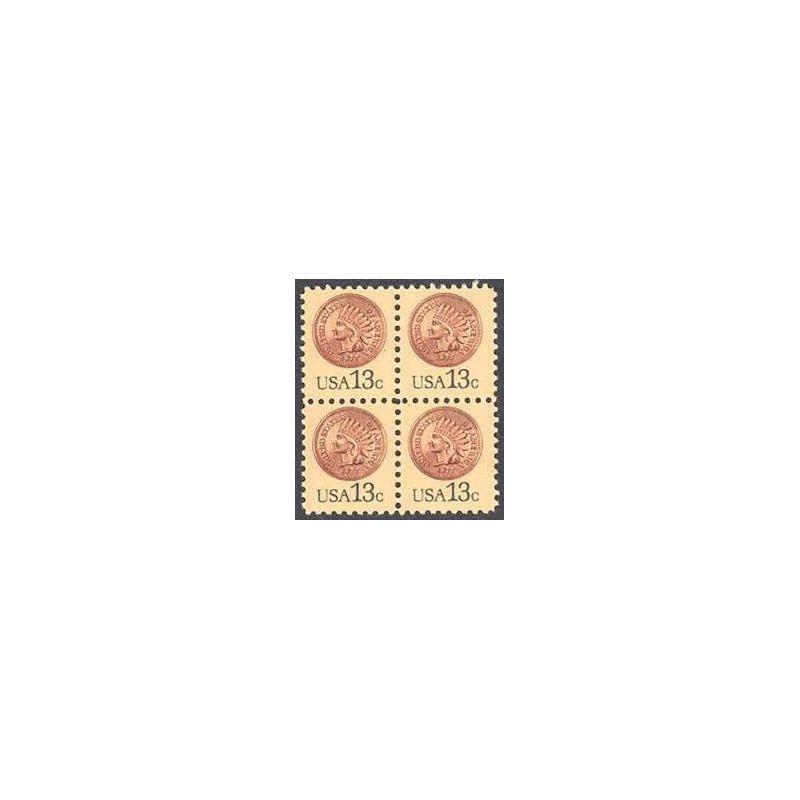 USA 1978 13-Cent Indian Head Penny Block of 4 Postage Stamps, Catalog No 1734