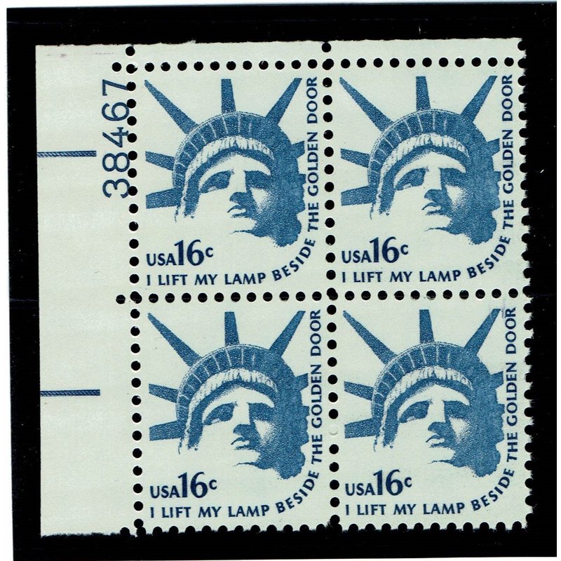 USA 1978 16-cent Statue of Liberty Plate Block of 4 Postage Stamps, Catalog No 1599