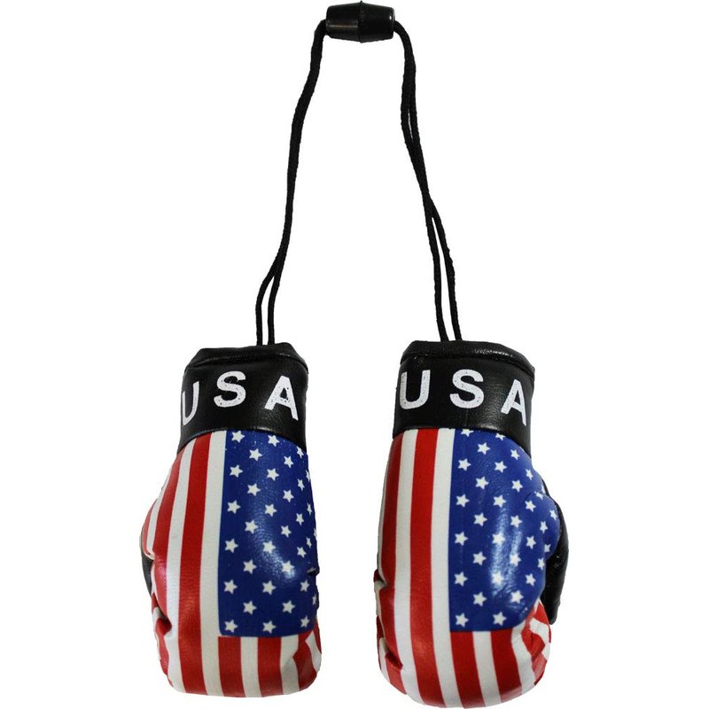 Our USA vinyl boxing gloves are a great way to show your pride, and look stylish hanging from your rear view mirror. The two gloves are connected with a plastic snap so they can easily be displayed together or apart.