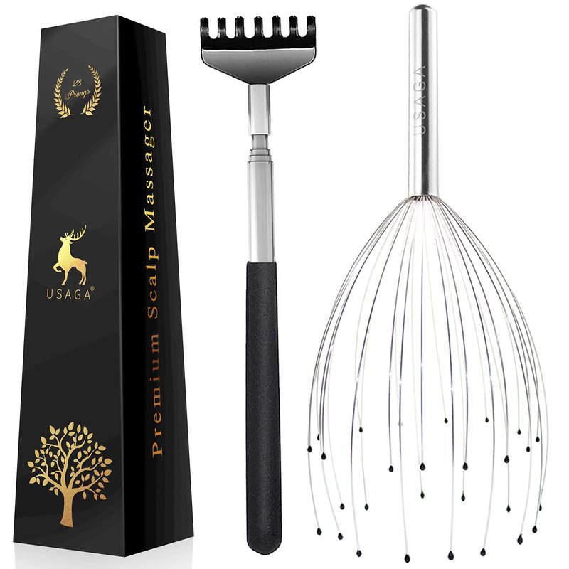 USAGA 28 Fingers (3rd Generation) Head Massager, Scalp Massager, Head Scratcher, Extendable Back Scratcher for Stress Relief, Hair Stimulation and Body Relaxing