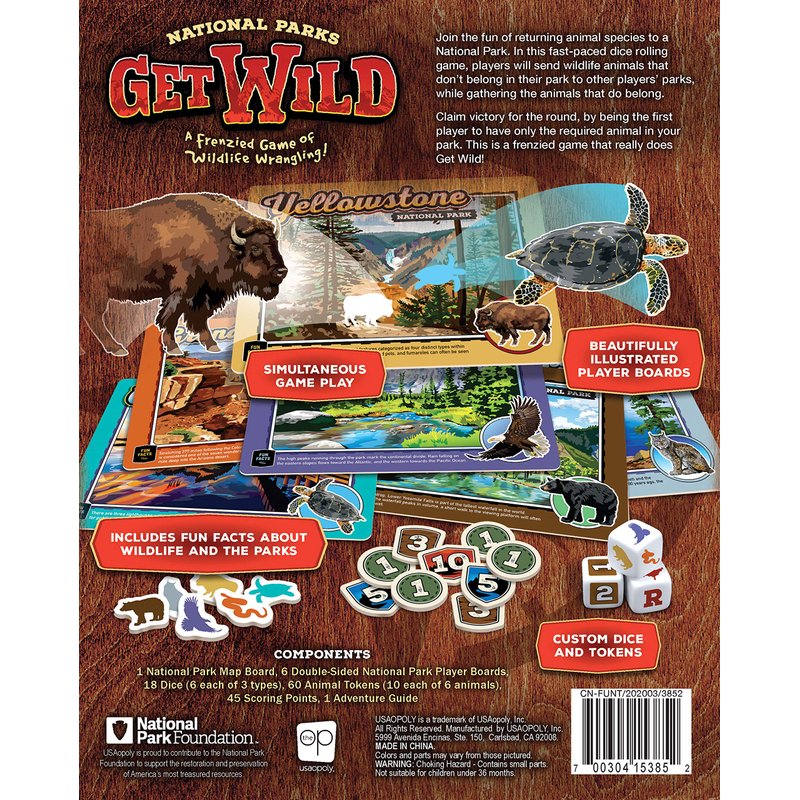 - Time to get wild with this family dice game featuring a National Park twist where players race to return a variety of animals to their appropriate locations across the United States