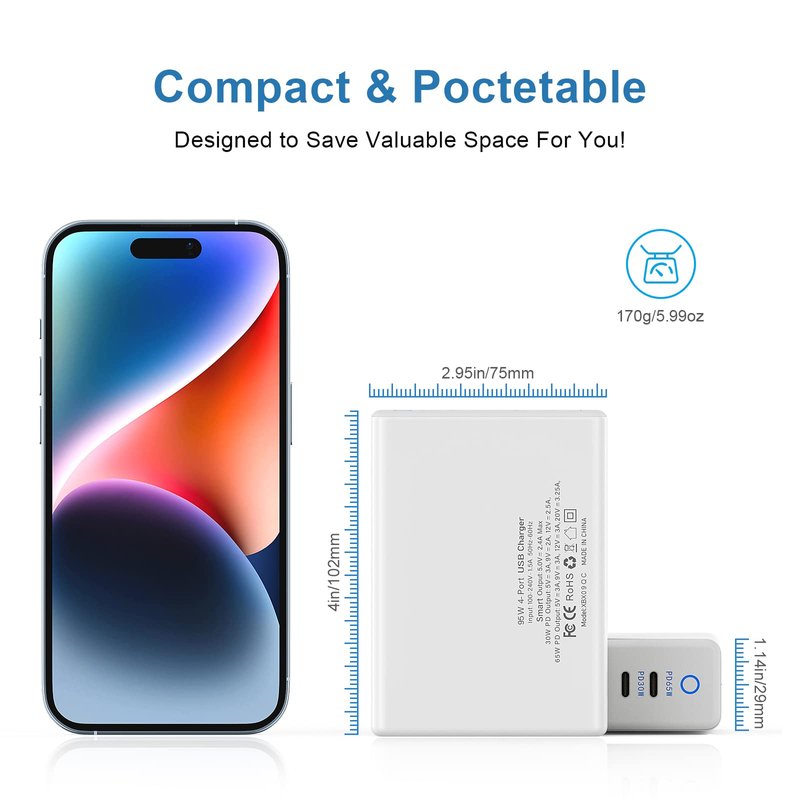 USB C Charger Block, Fast Charging Station, PD 95W Adapter for MacBook, iPad Pro, Laptop, Galaxy S24, iPhone 16/15 and More Series -Cell Phone Wall Chargers