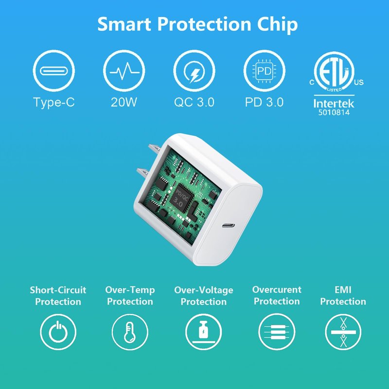 - The updated smart chip in the USB-C power adapter protect your phone and pad from overcurrent, over-voltage, short-circuit and overheating.