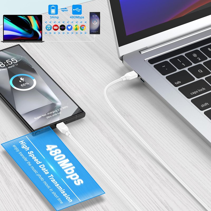 C charger cord fast charging PD cable are designed according to the USB 2.0 specification. Transmission speed is within 480Mbps(40-60MB/S).