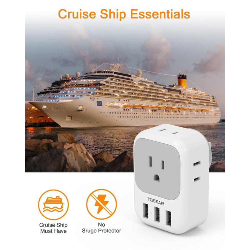 USB Charger Block, TESSAN USB Plug Adapter with Electrical 4 Box Splitter 3 USB Wall Charger Ports, Multi Plug Outlet Extender Charging for Cruise, Travel, Office, Dorm Essentials
