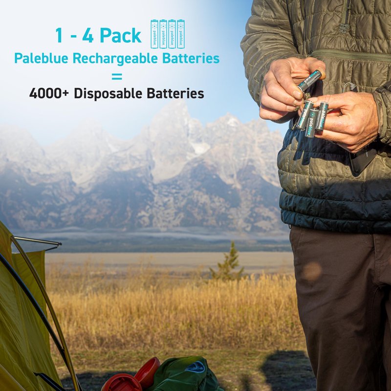 Pale Blue is focused on creating a better future by leveraging technology, innovation, and inspired product creation to greatly improve our utilization of energy and resources and greatly reduce the amount of waste we all produce. Pale Blue rechargeable batteries have better voltage stability, current output, and stability than alkaline and old school NiMh rechargeable batteries. Our batteries charge in one fifth the time of a similar NiMh rechargeable! In America alone, 10 million batteries are thrown away every day. One pack of Pale Blue USB rechargable lithium batteries can replace up to 4,000 alkalines. Making the switch can save you money and keep toxic disposable batteries out of landfills. #DitchDisposables