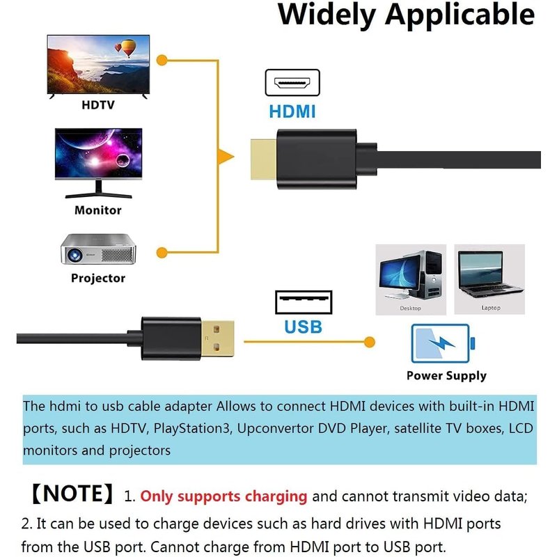 - ✔️【USB to HDMI Charing Cable 1.6ft/ 0.5m】Used to charge devices such as hard drives with HDMI ports from the USB port. Connect your Blu-Ray player, HDTV, Roku, PS4, Computer or other HDMI-compatible device to your HDTV, display or projector.