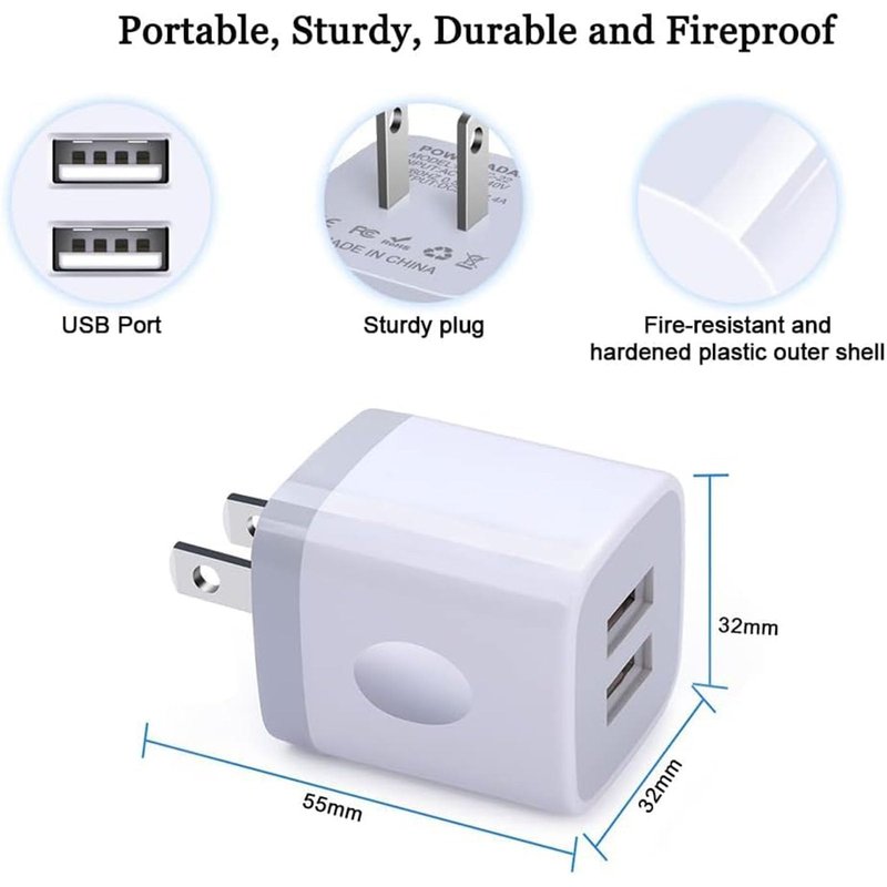 USB Wall Charger, FiveBox 2Pack Dual Port 2.1Amp Fast Brick Base Adapter Charging Block Charger Cube Plug Charger Box for iPhone 16 Pro Max 15 14 13 12 11 Pro X 6 6S 7 8 Plus, iPad, Samsung, Android