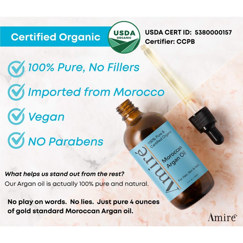 USDA Certified Organic Argan Oil 4oz, Triple Extra Virgin Grade Moroccan Argan Oil for Hair Growth. Skin, Face, & Nails. Moisturizer. Scalp Treatment Hair Oil for Dry, Damaged, Brittle Hair.