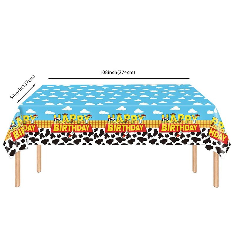 Let your child's favorite cartoon toy grace the party with a bright and colorful table cover featuring, this table cover measures 108 x 54in(274x137cm). and fits most tables, making a pretty and practical decoration. Perfect for both indoor and outdoor use, it's also disposable, providing quick and easy cleanup after the birthday bash! Just throw them away or wipe them and store them for next use, save your time to enjoying your party! Pair with coordinating cartoon story party tableware for a table setting that's a dream come true!