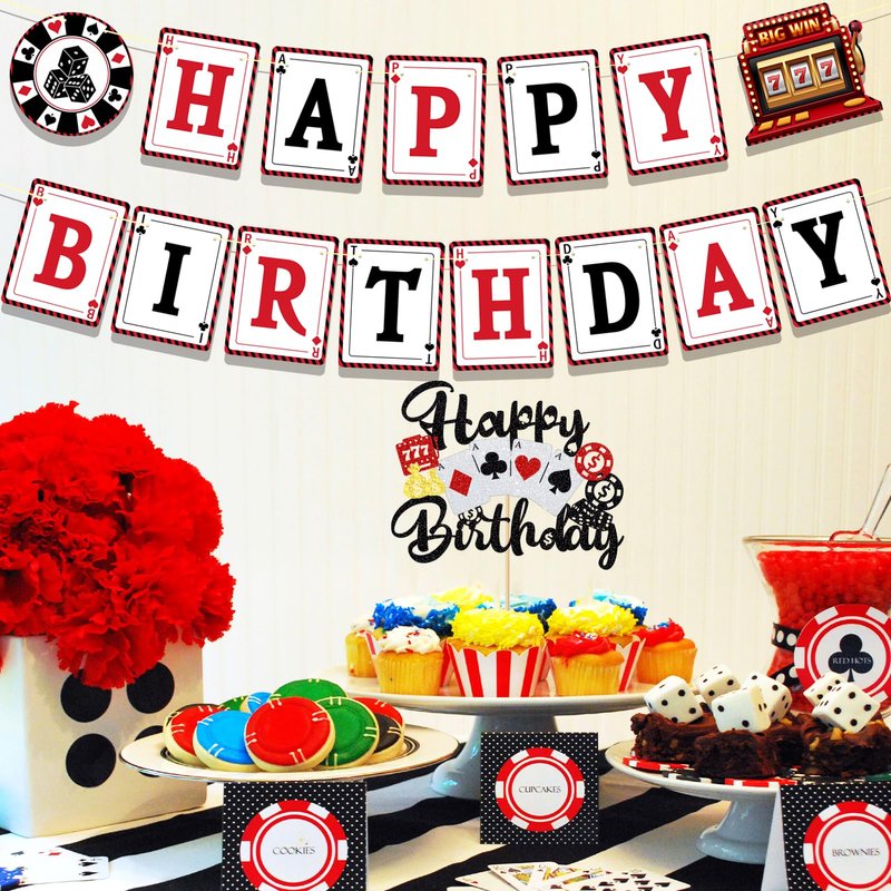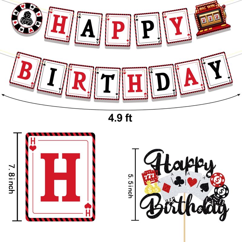 - Casino Birthday Banner: The birthday banner is made of high quality cardboard and casino cake topper is made of glitter cardboard that sparkles in the light. Perfect for celebrating theme party.