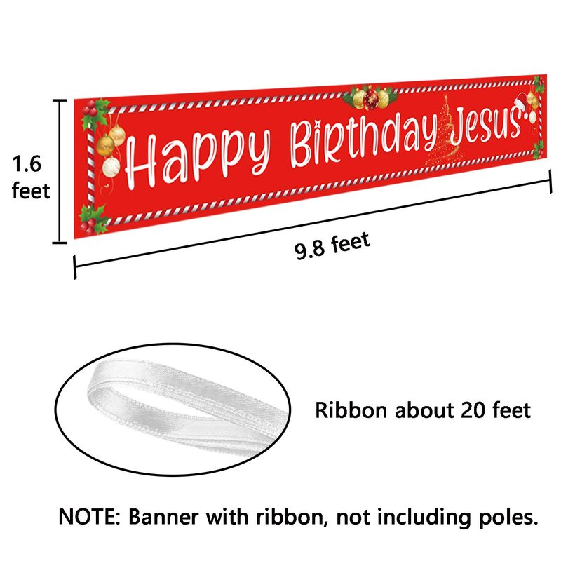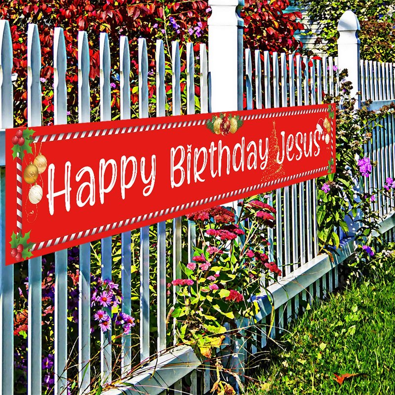 - Easy to use, Happy Birthday Jesus Banner with 20 feet hanging ribbon, you can hang it on any place your want: outdoor outside yard fence wall