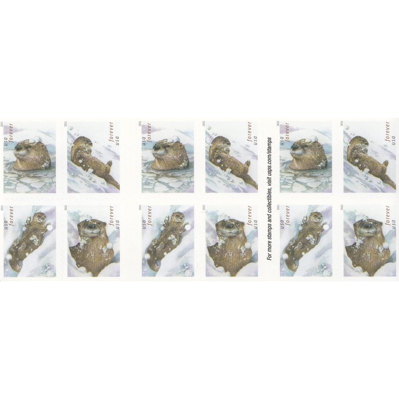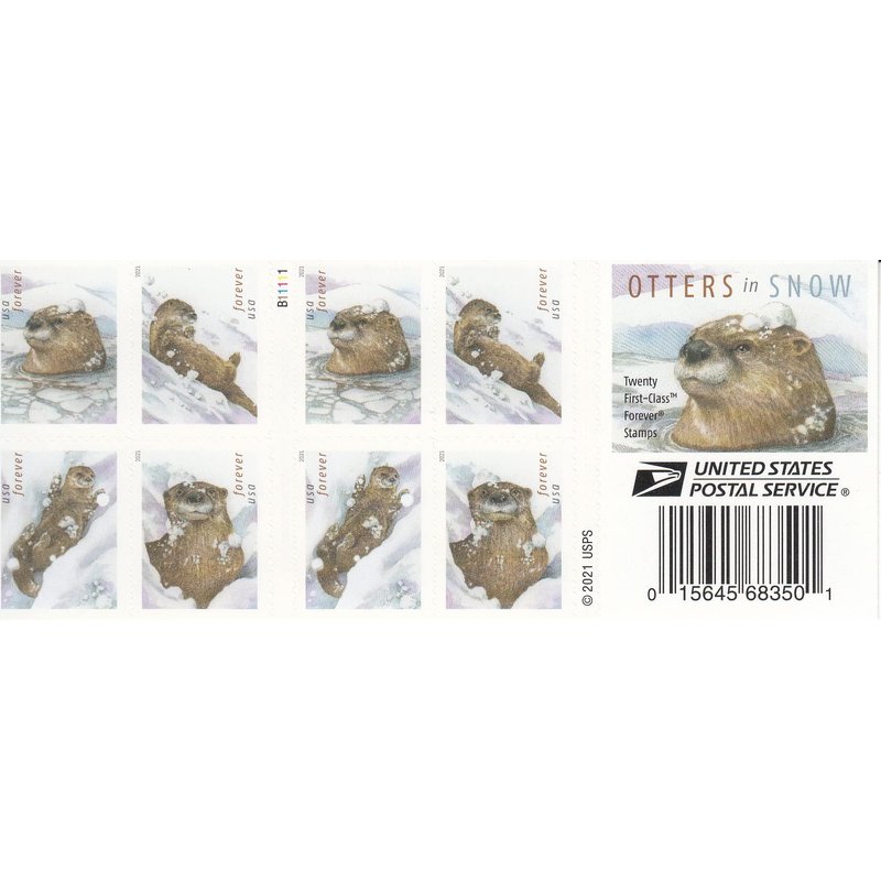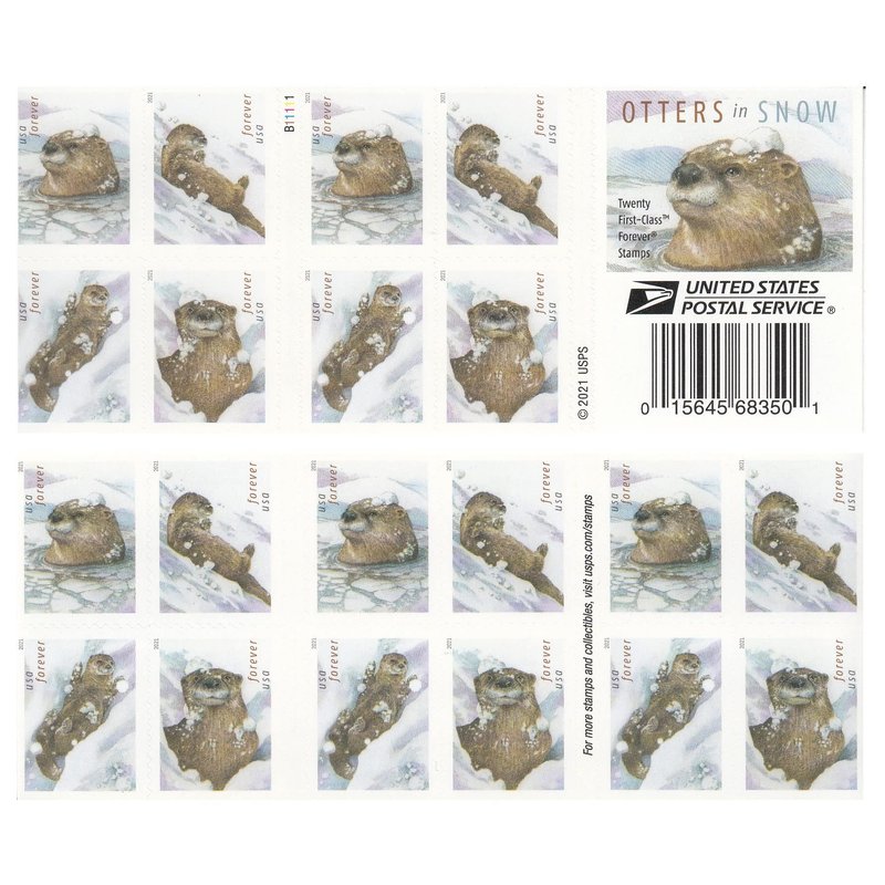 USPS 2021 Otters in Snow Forever First Class Postage Stamps Playful Theme, Winter, Holiday, Invitations, Animal Lover, (1 Booklet of 20 Stamps)